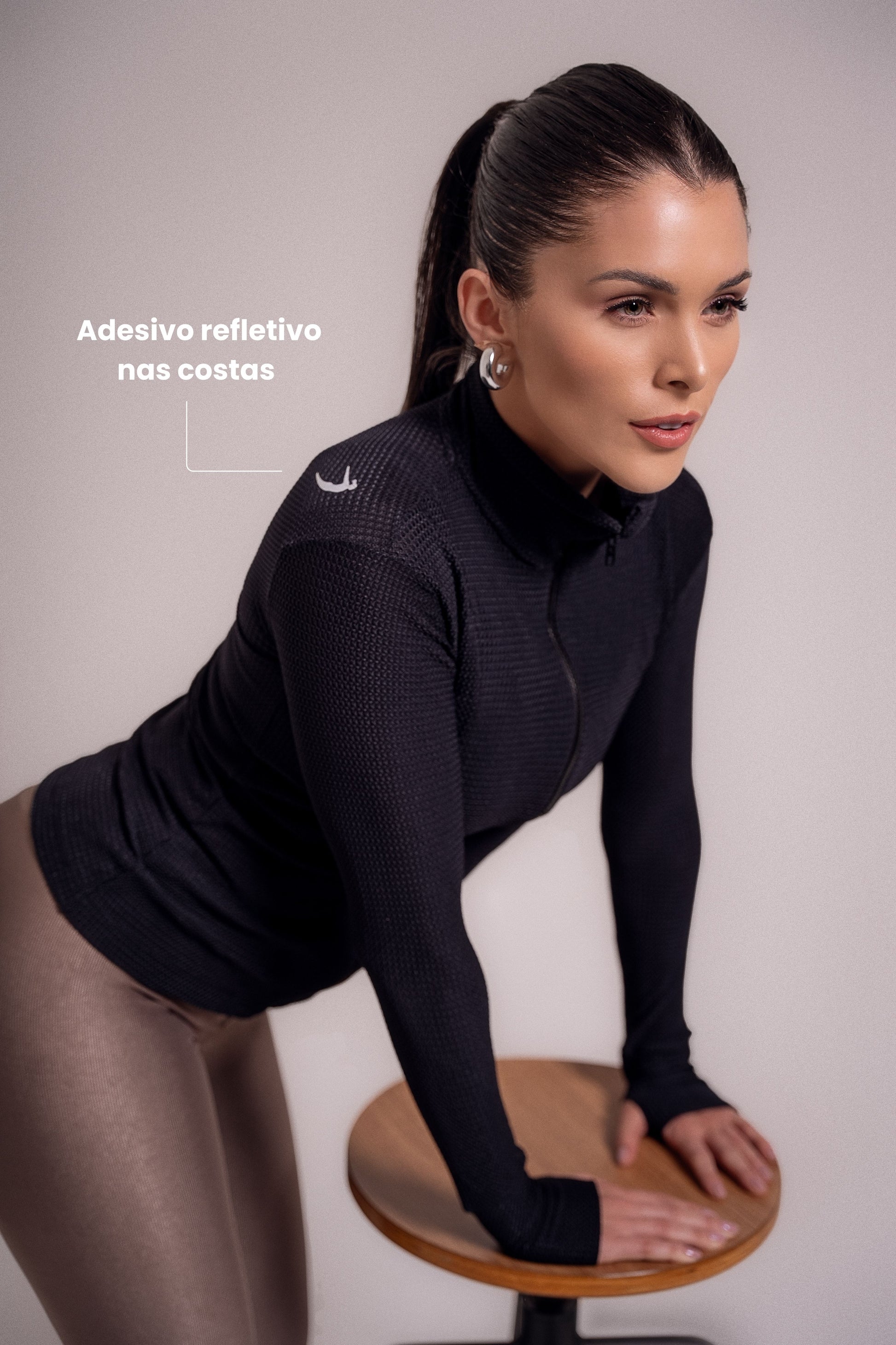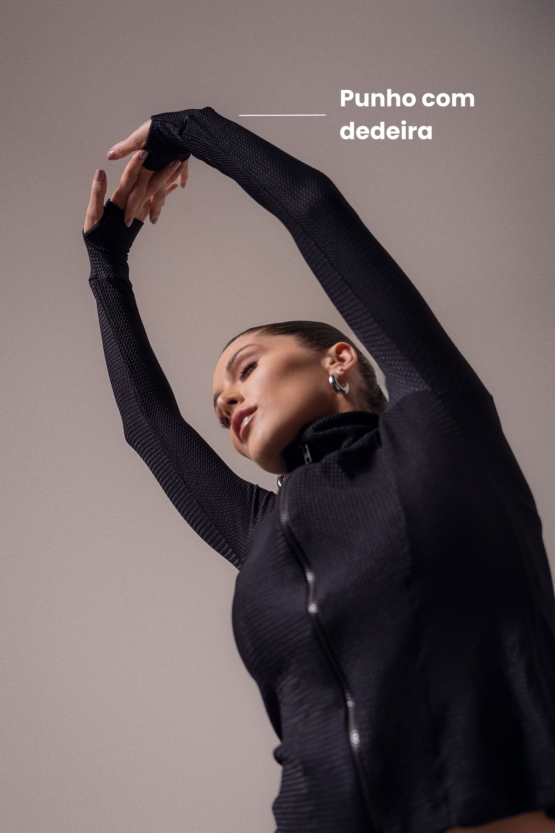 - Design ergonômico: Punhos ajustados com abertura para os polegares, oferecendo maior liberdade de movimento.
