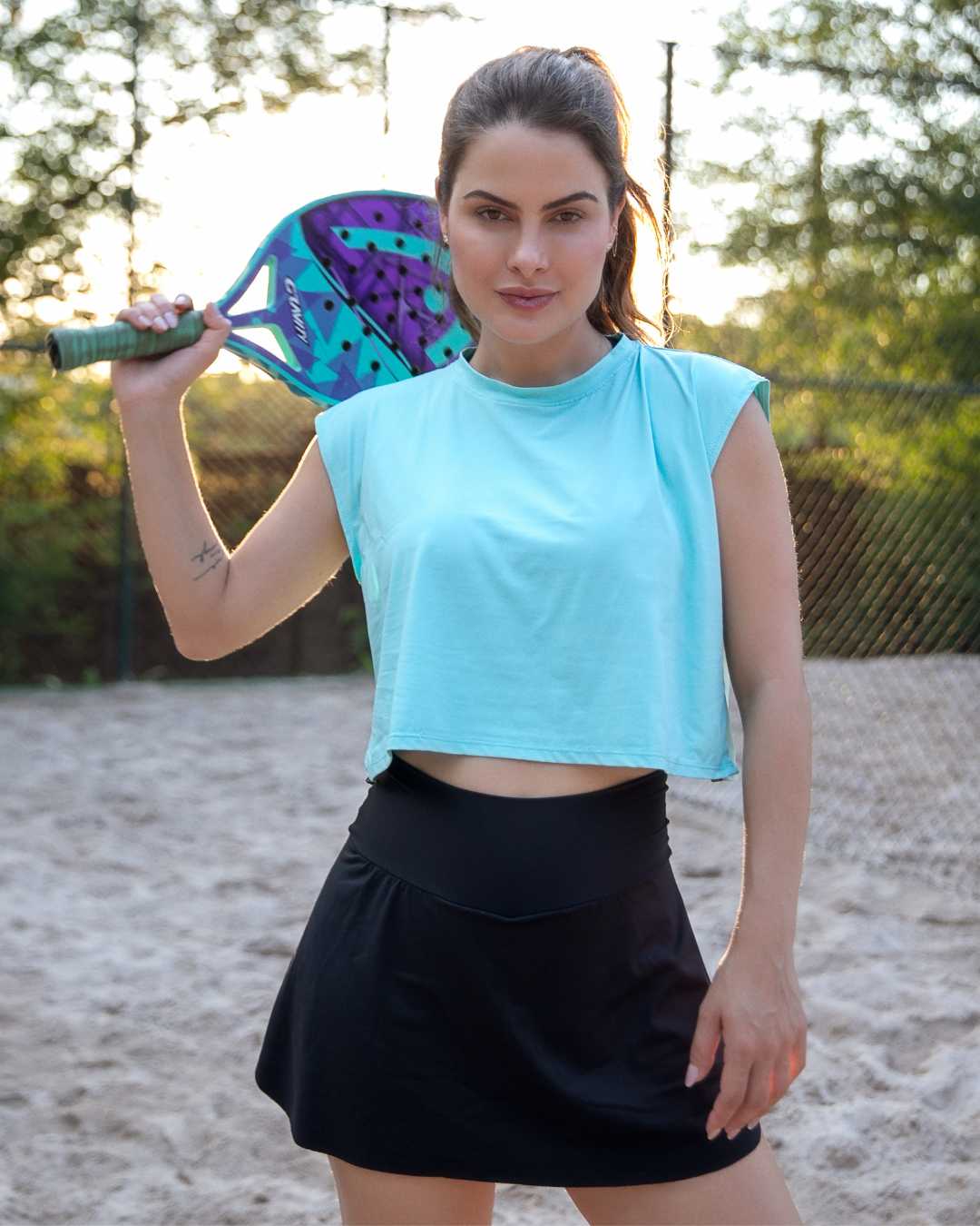 - Conforto e Flexibilidade: Confeccionado em tecido suplex light de poliamida, o short saia oferece um ajuste suave e elástico, permitindo total liberdade de movimento e conforto durante seus treinos.